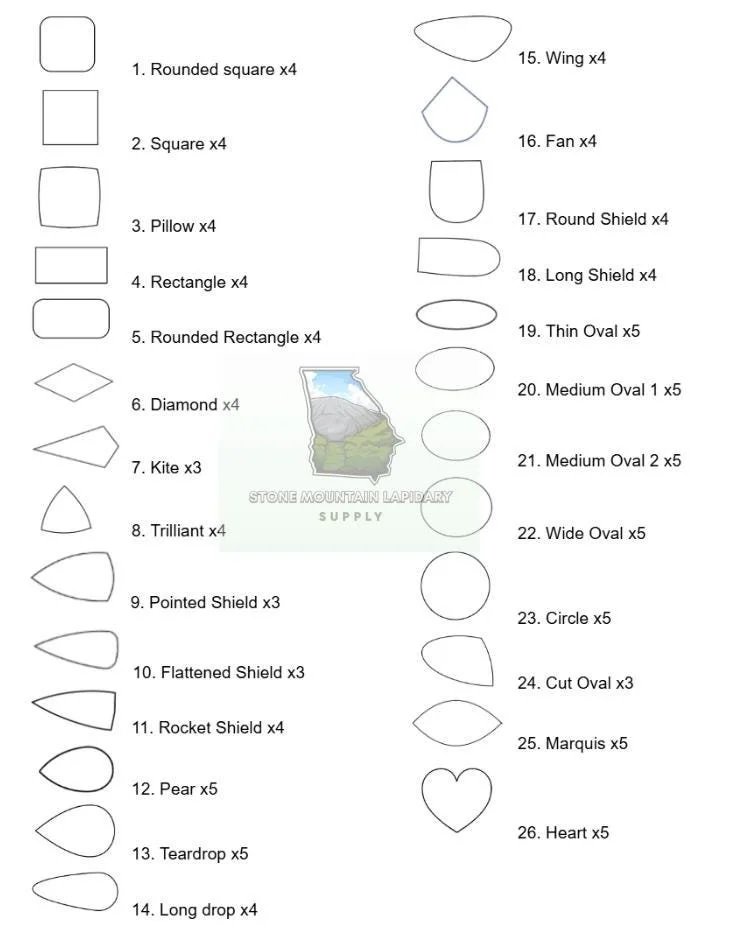 Shop Clear All | Stencils | Filters Categories All Stencils Filter Clear Filter 100+ shapes Clear Acrylic Cabochon Template/Stencil Set 3 Sheets 5"x8"x1/8" (3mm) Sale Price: $29.99 Original Price: $34.99 Sale Add To Cart Added! Clear Acrylic Indexed Cabochon Stencil Set for standard size settings Sale Price: $19.99 Original Price: $25.00 Sale Add To Cart Added! 100+ Shape Cabochon Stencil/Template Set in Clear Acrylic Sale Price: $9.99 Original Price: $17.00 Sale Add To Cart Added! Clear Acrylic Cabochon Template Stencil Set, Trapezoids, Fans, Coffins, 100+ Shapes Sale Price: $22.99 Original Price: $29.99 Sale Add To Cart Added! Teardrop/Leaf Shapes ( 2sheets 5"x8"x1/8") Sale Price: $22.99 Original Price: $29.99 Sale Add To Cart Added! No results found No results match your search. Try removing a few filters.